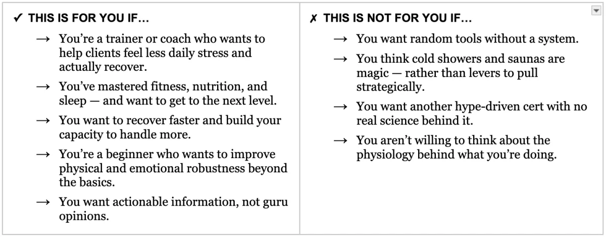 → You finally understood how to strategically program cold/heat therapy, breathwork, and other modes to become truly anti-fragile.