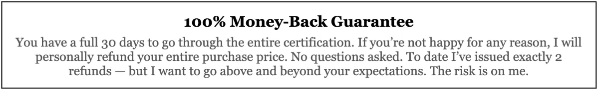30-day full money-back guarantee · Lifetime access · 100% online